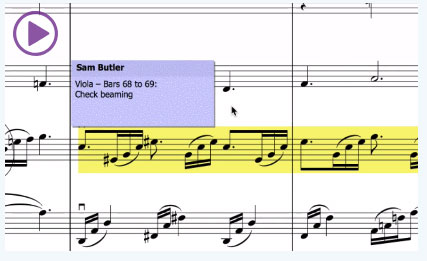 需要传达或征求创意、建议和对乐曲的更改?您现在可以在审查模式下直接向乐谱添加注释,以向编辑、制版师或学生传达排练注意事项、反馈或指导内容。您也可以突出显示乐段,甚至使用手写笔或 Surface Pro 触控笔直接对分谱进行批注。
