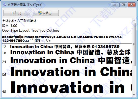 方正跃进体包括方正跃进简体和方正跃进繁体,该字体特点鲜明、具有时代气息。方正跃进体近似一种超粗的仿宋体模型,但横、竖、撇、捺、折基本一样粗,字形方正,字体笔画粗而不呆,比标宋、大黑粗,比粗黑细,结构舒展平稳、美观大方、特点明确、耐看实用。本站提供的方正跃进简体字体由热心网友免费分享,仅限于个人藏学习,如需要商用,敬请联系方正官方网站。