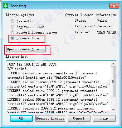 11、这里打开电脑桌面上的tecplot rs 2017 r1软件,弹出授权,选择license file,点击open license file--选择【C:\Program Files\Tecplot\TecRS 2017 R1\AMPED】目录下的tecplotlm.lic文件--ok。