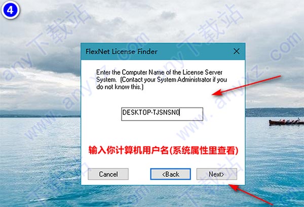 弹出FlexNET许可证查找框->点击Next->输入你计算机用户名(系统属性里可在查看);