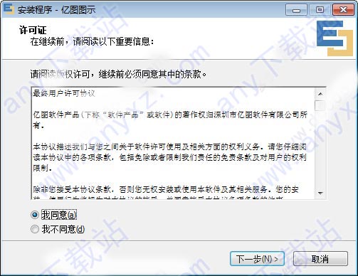 2、首先双击文件“edrawmax-cn-9.1”安装亿图图示专家原程序,点击我同意继续安装;