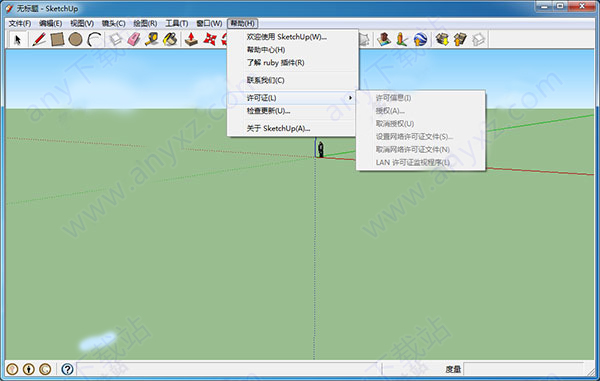 6、点击桌面的Google SketchUp 8快捷图标,选择模板即可进入草图大师8.0中文版的操作界面,我们可以发现此版本已经破解,没有功能限制,如下图: