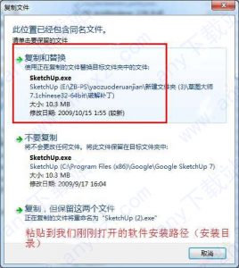 6、下面选择破解补丁文件夹下面的SketchUp.exe程序,并将其复制粘贴到SketchUp的安装根目录下,选择替换操作,如下图所示: