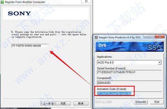 6、在桌面上运行ACID Pro 6.0,弹出注册界面,回到安装包下运行ACID Pro 6.0注册机,点选择版本为ACID Pro 6.0,点击Generate生成序列号并将其复制到注册界面