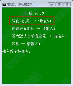 2、绿化输入1,创建桌面图标输入2,设置默认音乐播放器输入3,卸载输入4;