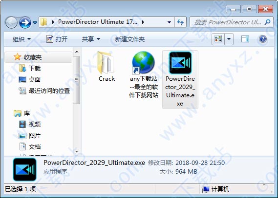 1、下载本站提供的cyberlink powerdirector Ultimate 17中文原程序和crack破解文件。