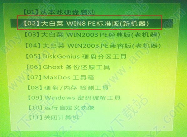 3、这时进入大白菜界面,根据电脑的新旧选择操作,小编选择第二项进入WinPE模式;