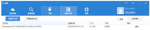 4、下载页面:可以查看正在下载的资源,以及已经完成的下载。