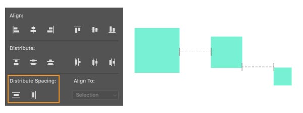 现在,您可以在对象之间分布间距。Photoshop 已经可以通过在对象的中心点均匀布置间距,来分布多个对象。即使对象的大小互不相同,您现在仍可以在这些对象之间均匀地分布间距。
