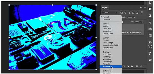 现在,您可以滚动查看各个混合模式选项,以了解它们在图像上的外观效果。当您在图层面板和图层样式对话框中滚动查看不同的混合模式选项时,Photoshop 将在画布上显示混合模式的实时预览效果。